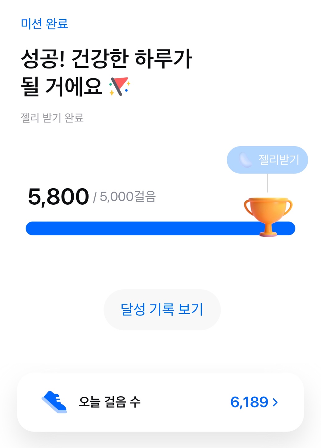 - 하루 5천 걸음 이상 걷기만 해도, 젤리 획득이 가능하며"젤리 받기" 눌러줘야 젤리를 받을 수 있습니다.
