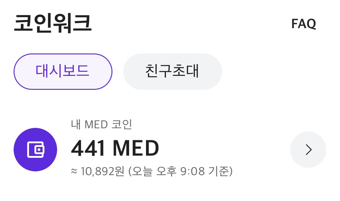 - 코인워크 는 만보기 기능으로 매일 6 MED 코인 획득하여 거래소에서 현금화 가능하며 "MED받음' 버튼 클릭해야 코인 획득 가능합니다.